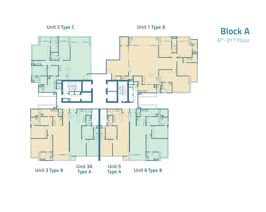 从963 平方英尺到6274 平方英尺(89.5 平方米到582.5 平方米),单位从两间卧室至四间卧室都有,每 各单位都用油书房和浴室。